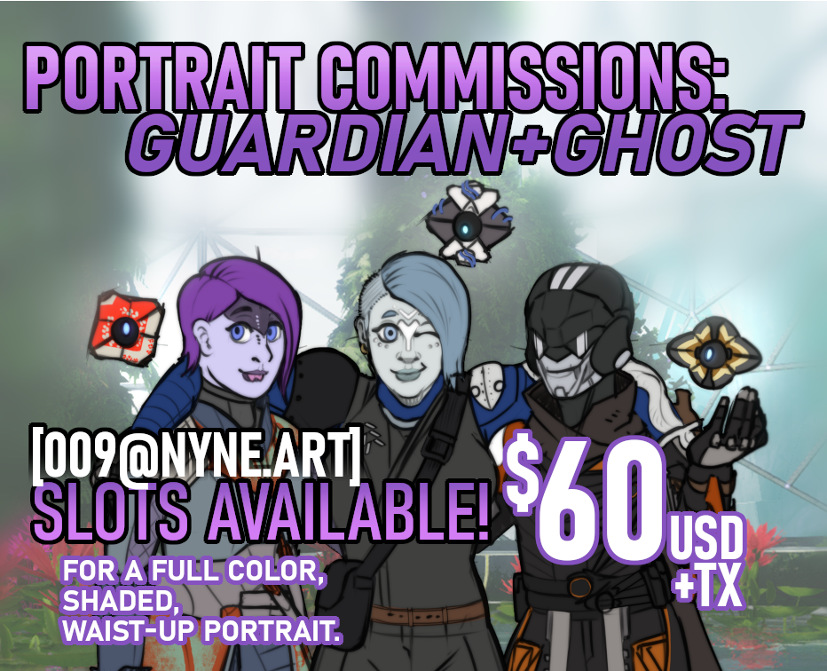 Howdy everyone! I am Nyne: a self-taught freelance illustrator originally from the bay area. In 2021 I moved to WV with hopes of marrying my best friend, but now it's just me, my house, and my garden against the world.Since 2009, I have been writing fanfiction, making cosplay, and drawing fanart for various fan communities (human & furry alike) as they've come and gone over the decades... And I don't think I'll stop anytime soon!Looking for an estimate? I offer free quotes through my commission form and will gladly answer any questions.